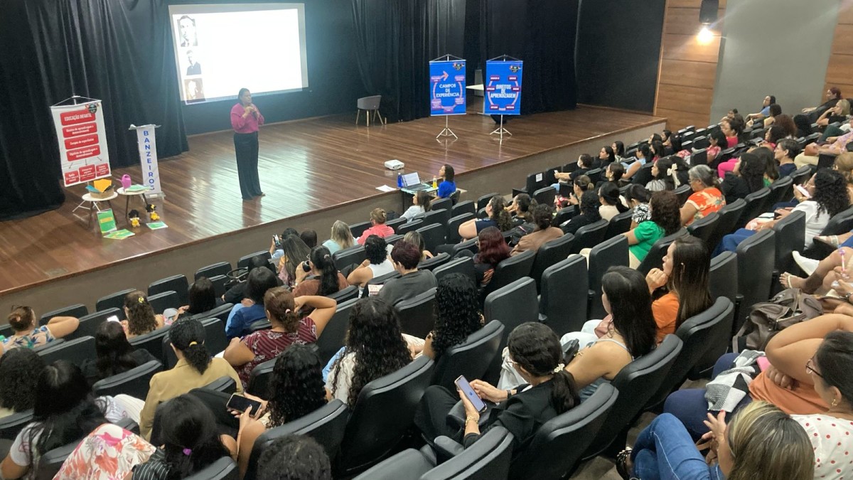 Na última sexta-feira (4), a formação para os profissionais da educação infantil foi concluída, após três dias de intensas atividades realizadas no teatro Banzeiros, que envolveram educadores de creches, pré-escolas e salas de recursos do município.