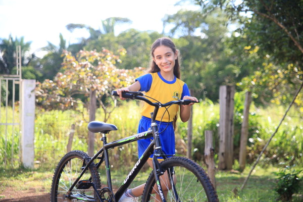 O sorriso estampado no rosto de Amanda Rodrigues, 10 anos, demonstra a felicidade de quem ganhou uma bicicleta novinha. O prêmio do Projeto Aluno Destaque representa mais que que um incentivo para avançar nos estudos, significa a realização de um sonho para ela, a mãe Alciane Rodrigues e a família inteira, que vibrou com a conquista.