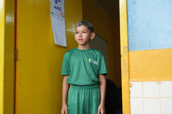 Jonathan Davi, estudante do 6º ano, que percorre 2 km todo dia de ônibus para chegar à escola, demonstrou alegria com o retorno às aulas. “Eu queria muito voltar para ver como a escola está. Estava com saudade dos meus amigos. Achei a cor verde do uniforme mais bonita”, contou, ansioso para receber o material escolar.