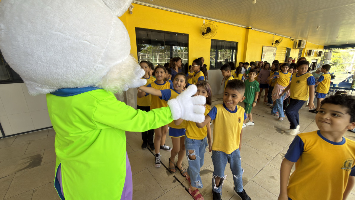 A ação tem como objetivo divulgar a “Páscoa no Parque”, evento que começa no dia 1º de abril e segue até o próximo domingo (5), no Parque da Cidade. Durante as visitas, os alunos são surpreendidos com a presença do coelhinho da Páscoa e a distribuição de chocolates, tornando o momento ainda mais especial.