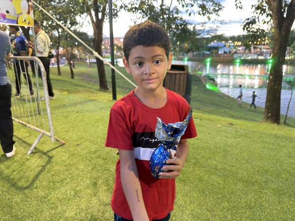 Logo na chegada, mais de três mil sacolinhas foram distribuídas ao público, marcando o início de uma experiência pensada para garantir conforto e participação. A programação contou com teatro de fantoches, oficina de pintura de ovos, parede de escalada, show animado, caça aos ovos com 200 unidades, além de um espaço cenográfico da Fábrica de Chocolate com distribuição de mil caixas e fotos impressas com personagens. Pipoca, algodão doce e o espetáculo “O Plano Perfeito” completaram as atrações, com personagens interagindo com o público durante toda a tarde.