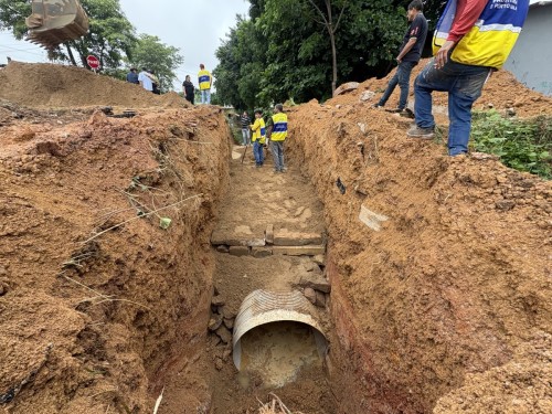 DRENAGEM - Prefeitura reforça canal na Rua Samoel Menezes com novo tubo para aumentar vazão da água